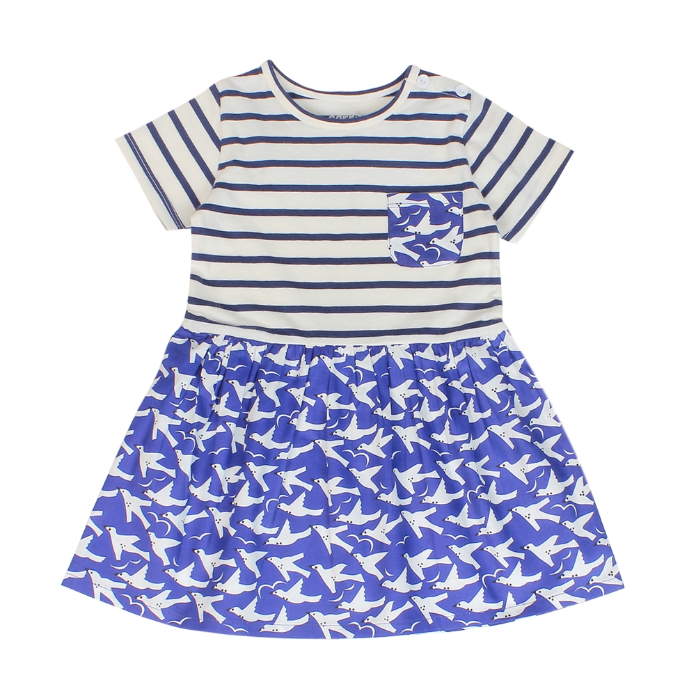 Đầm vải bé gái thương hiệu Carrot, sản xuất tại Việt Nam. Đầm thun được may bằng chất vải 100% cotton mềm mại, thấm hút mồ hôi, đường may kỹ lưỡng chắc chắn, bé thoải mái vận động. Sản phẩm không kích ứng với làn da mỏng manh của bé yêu. Kiểu dáng dể thương với đầm tay ngắn, gam màu sọc xanh cùng họa tiết đáng yêu sẽ mang đến phong cách khỏe khoắn, thoải mái và không kém phần thời trang cho bé yêu của bạn.
