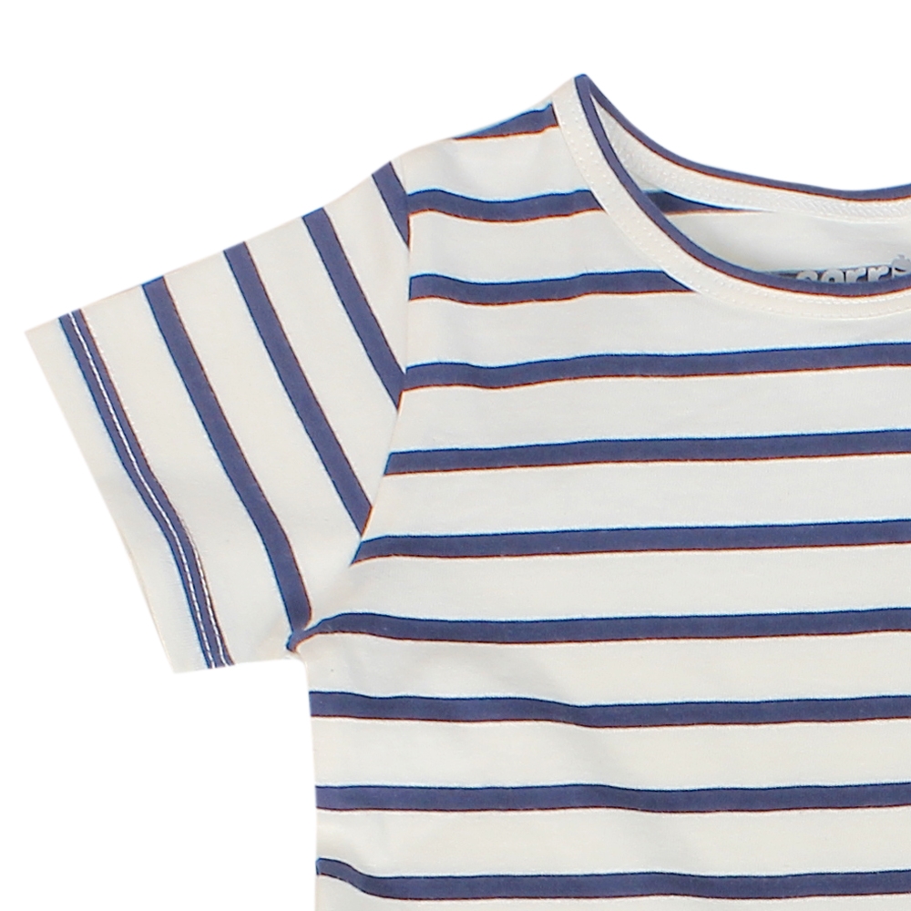 - Kiểu dáng rộng rãi, thoải mái, mát mẻ khi thời tiết nóng bức. Gam màu sọc xanh cùng họa tiết siêu đáng yêu.