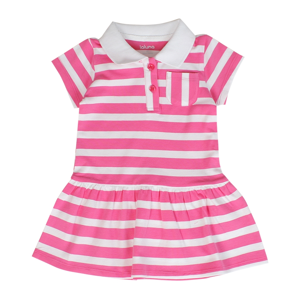 Đầm thun bé gái thương hiệu Laluna, sản xuất tại Việt Nam. Đầm thun được may bằng chất vải 100% cotton mềm mại, thấm hút mồ hôi, đường may kỹ lưỡng chắc chắn, bé thoải mái vận động. Sản phẩm không kích ứng với làn da mỏng manh của bé yêu. Kiểu dáng dể thương với đầm cọc tay, gam màu sọc trắng hồng cùng họa tiết đáng yêu sẽ mang đến phong cách khỏe khoắn, thoải mái và không kém phần thời trang cho bé yêu của bạn.