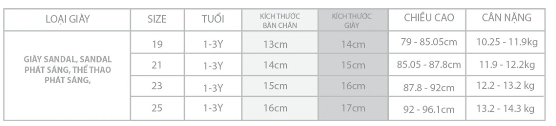 Size trên sản phẩm là kích thước độ dài của chân bé. Ba mẹ chọn size dựa theo độ dài chân bé: