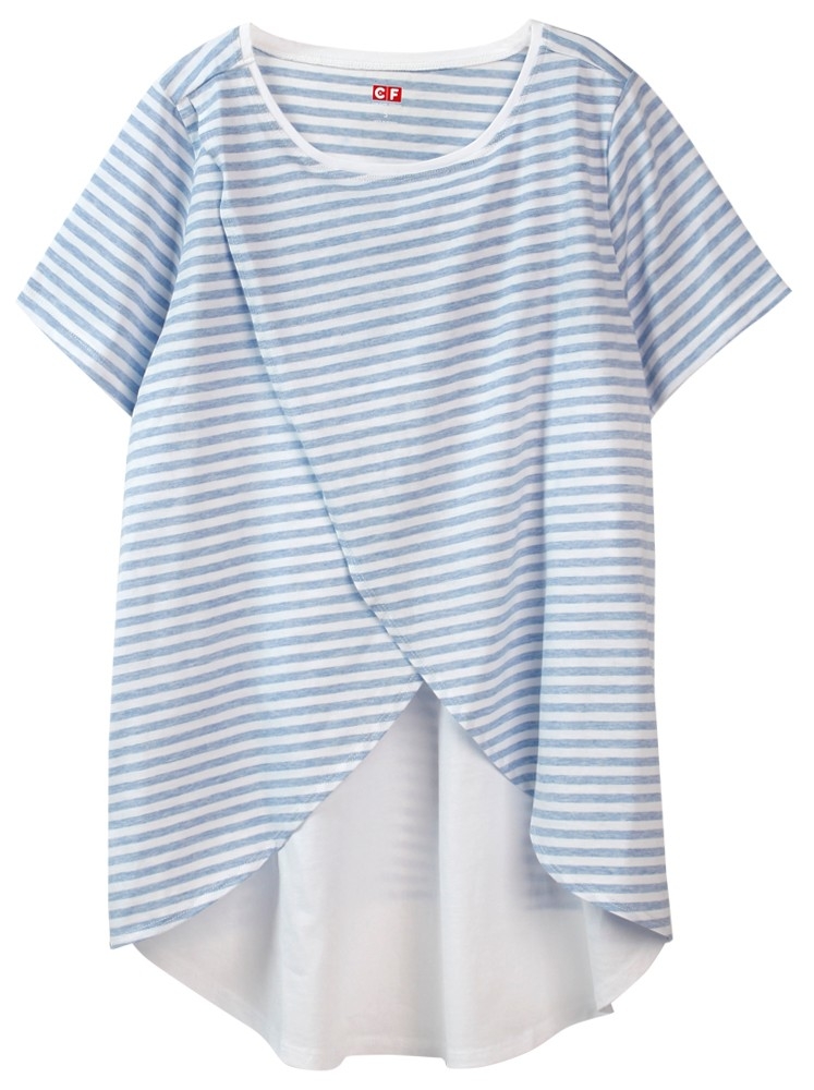 Thiết kế vạt chéo tạo sự thời trang cho sản phẩm cũng như sự thoải mái khi mẹ diện áo bầu này. Và mẹ có thể cho bé bú khi mở vạt chéo của áo, rất tiện lợi