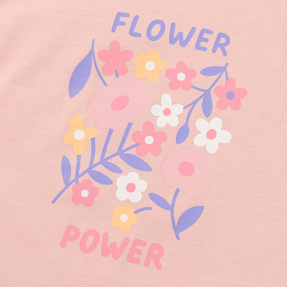 Họa tiết chủ đạo “Flower Power” với cụm hoa nhiều màu pastel (hồng, tím, vàng, trắng) đáng yêu, nổi bật khi lên ảnh.