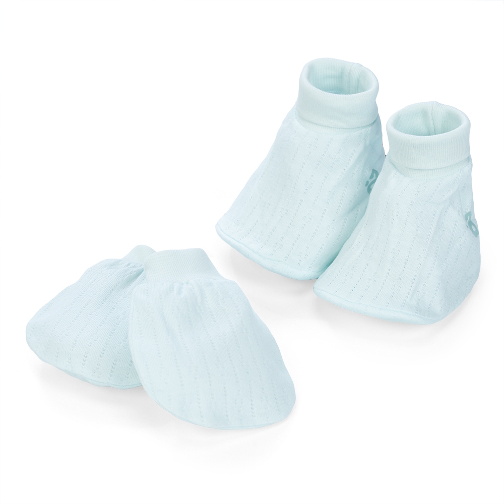 . Màu xanh ngọc tươi sáng kết hợp cùng hoạ tiết đơn giản, ba mẹ sẽ yêu ngay khi nhìn thấy bé diện bao tay chân.