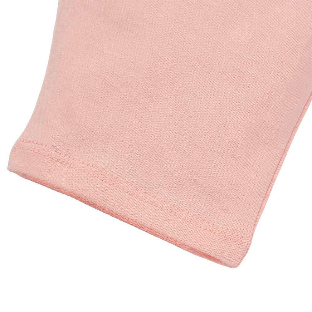 Chất liệu cotton co giãn nhẹ, thấm hút mồ hôi, giúp bé dễ chịu suốt ngày dài.