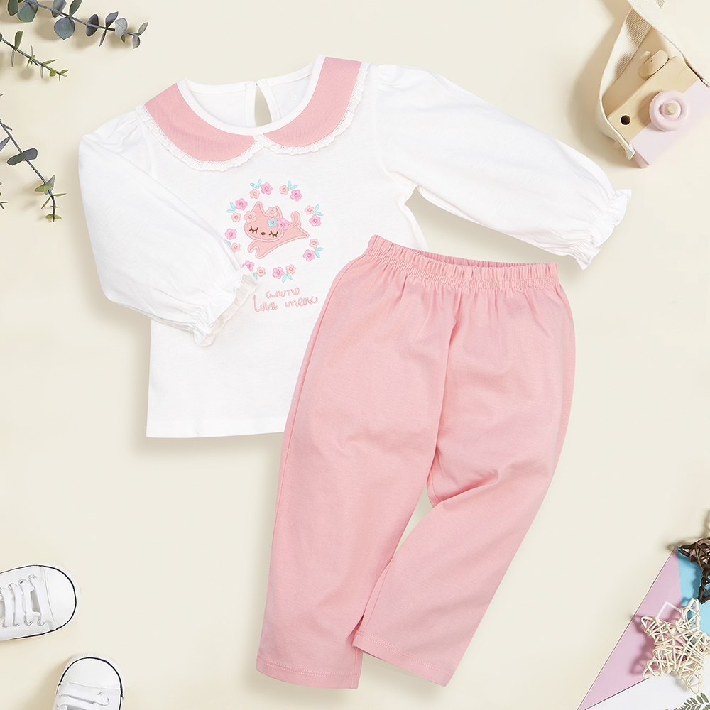 Bộ bé gái dài BST Mèo ngủ mơ Animo ST722035 (6M-6Y,Trắng)