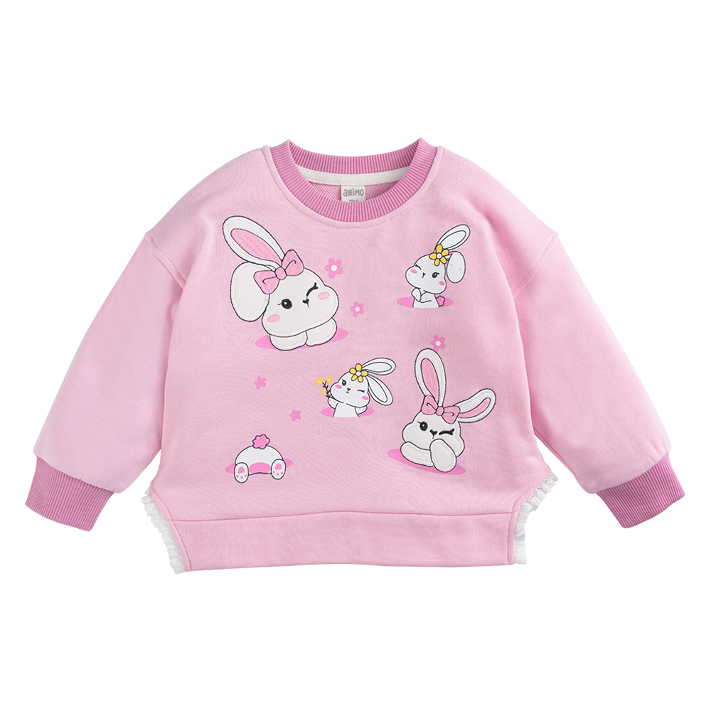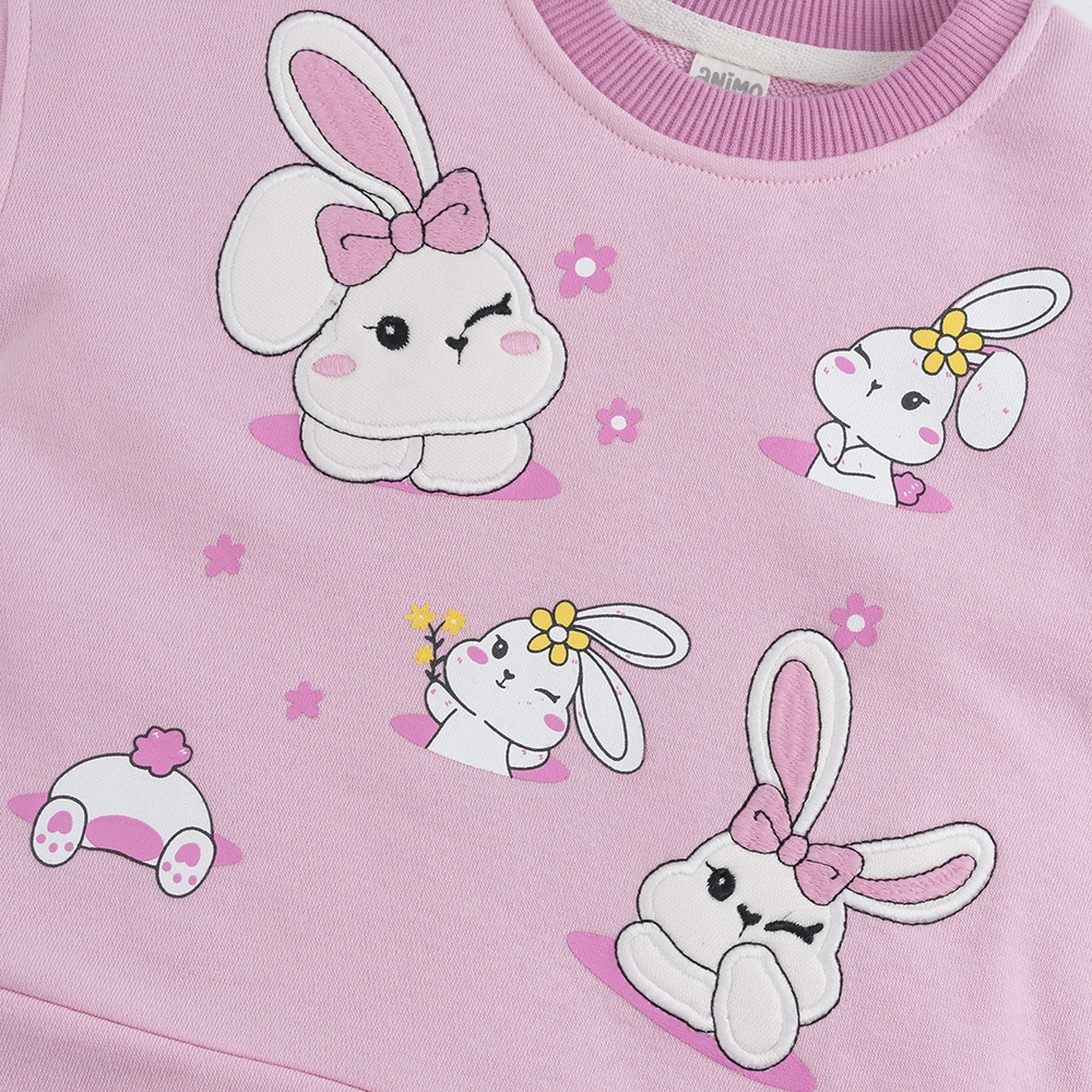 . Hoạ tiết hình thỏ độc đáo cùng màu hồng nữ tính giúp bé gái thêm phần xinh xắn và dễ thương.