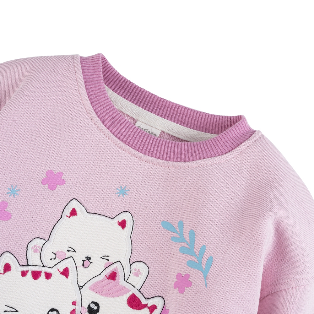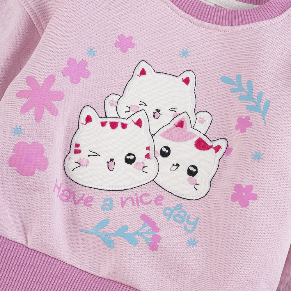 . Hoạ tiết hình mèo độc đáo cùng màu hồng nữ tính giúp bé gái thêm phần xinh xắn và dễ thương.
