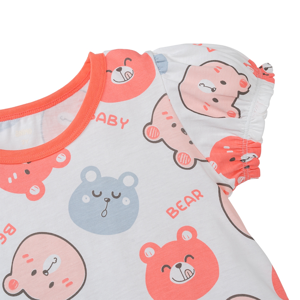 Bộ bé gái ngắn Animo Easy TQ0225001 (1-4Y,Trắng-Cam,TT02)