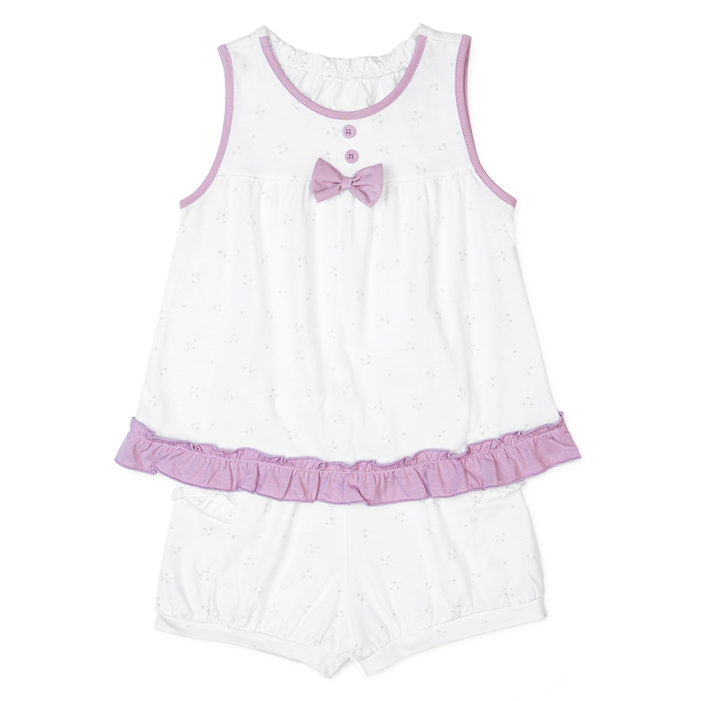 Bộ bé gái ngắn Animo TQ1122072 (6-9M,Trắng phối tím)