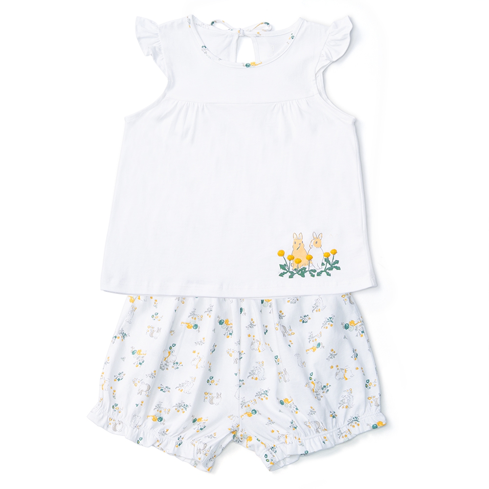 Bộ bé gái ngắn, Bst Thỏ và hoa Animo HN1222002 (5-6Y,Trắng)