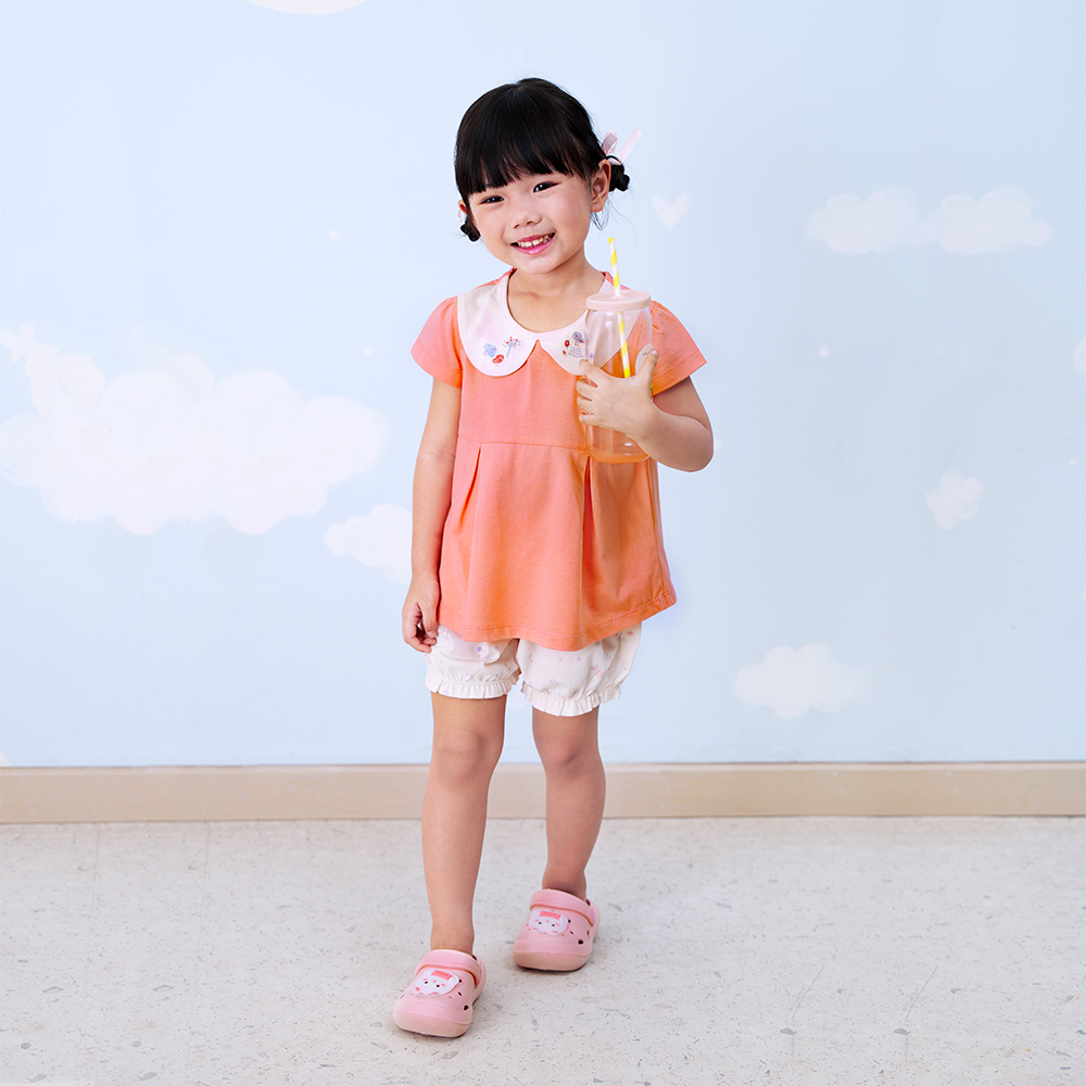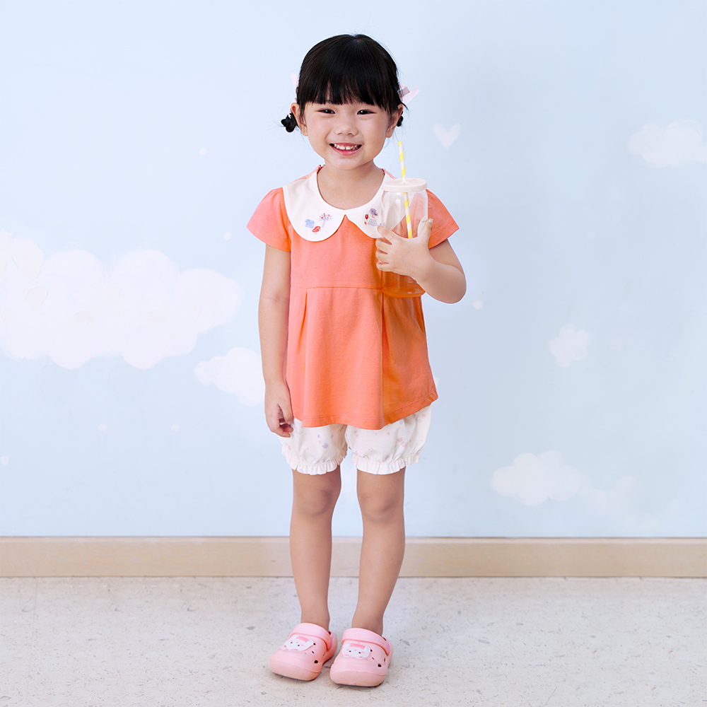 Bộ bé gái ngắn Gà con Chip Chip Animo TX0624004 (6M-6Y,Hồng )