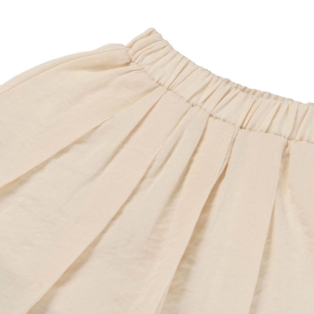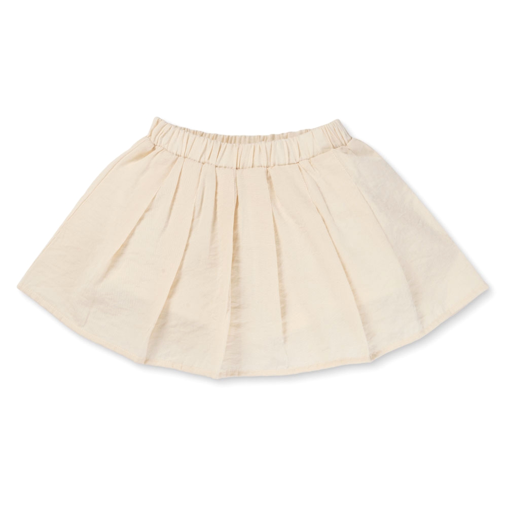 . Chân váy xếp ly màu kem mềm mại, giúp bé dễ vận động và thoải mái cả ngày