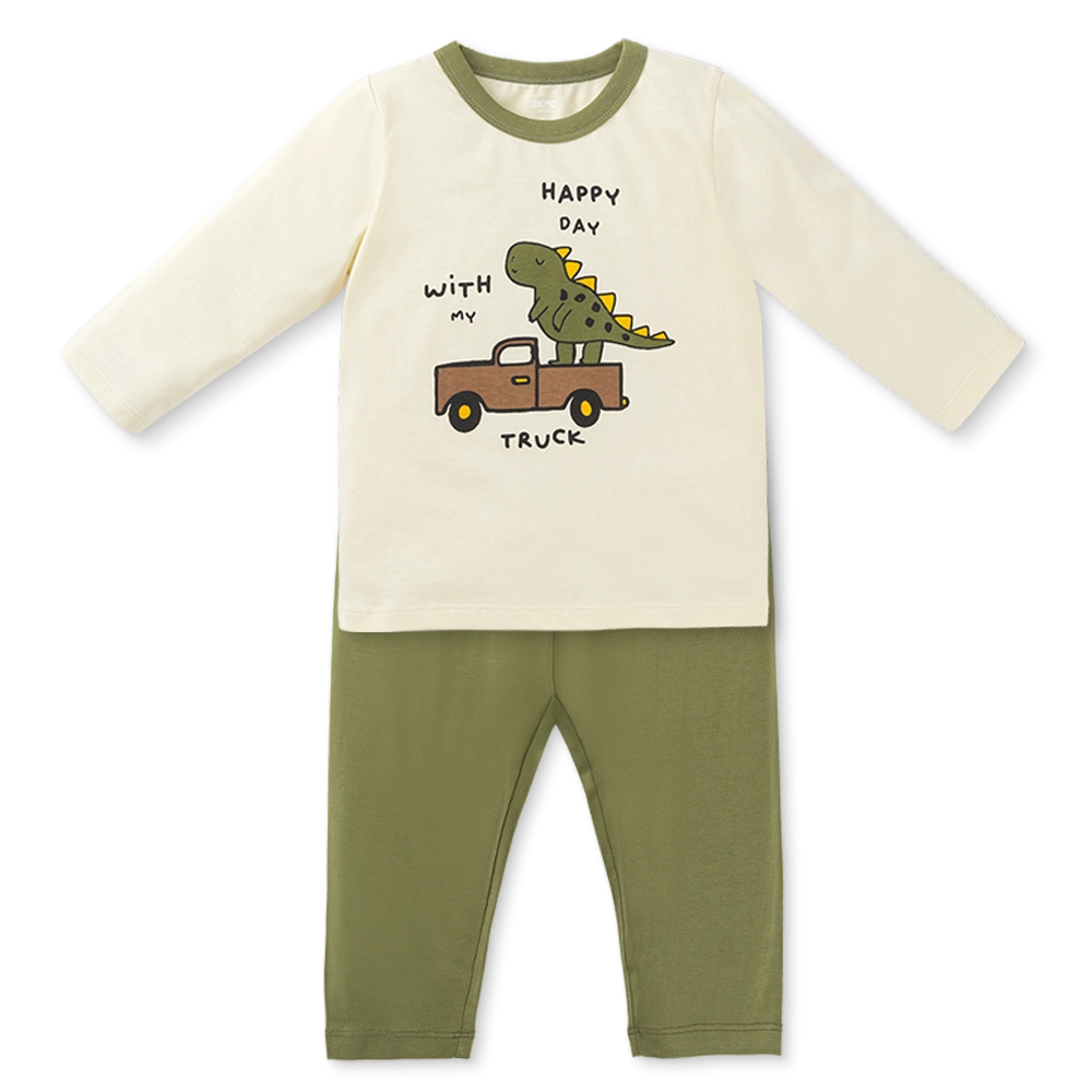 Bộ bé trai dài Animo Easy HN1025009 (1-4Y,Kem-lá, NN02) thiết kế dễ thương, hình nổi bật giữa áo đáng yêu.