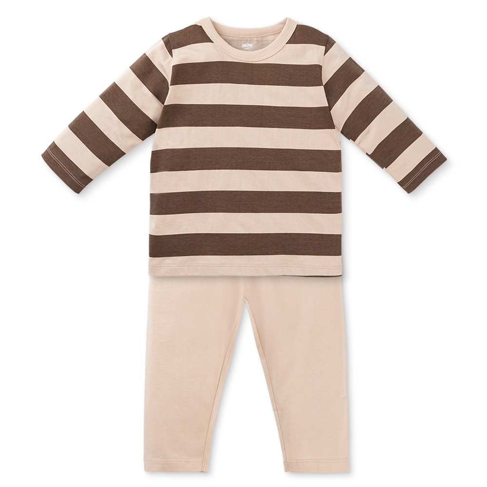 Bộ bé trai dài Animo Easy HN1025012 (1-4Y,Be, DD07) hoạ tiết sọc ngang to, dễ thương, chất vải mềm mịn, thấm hút tốt.