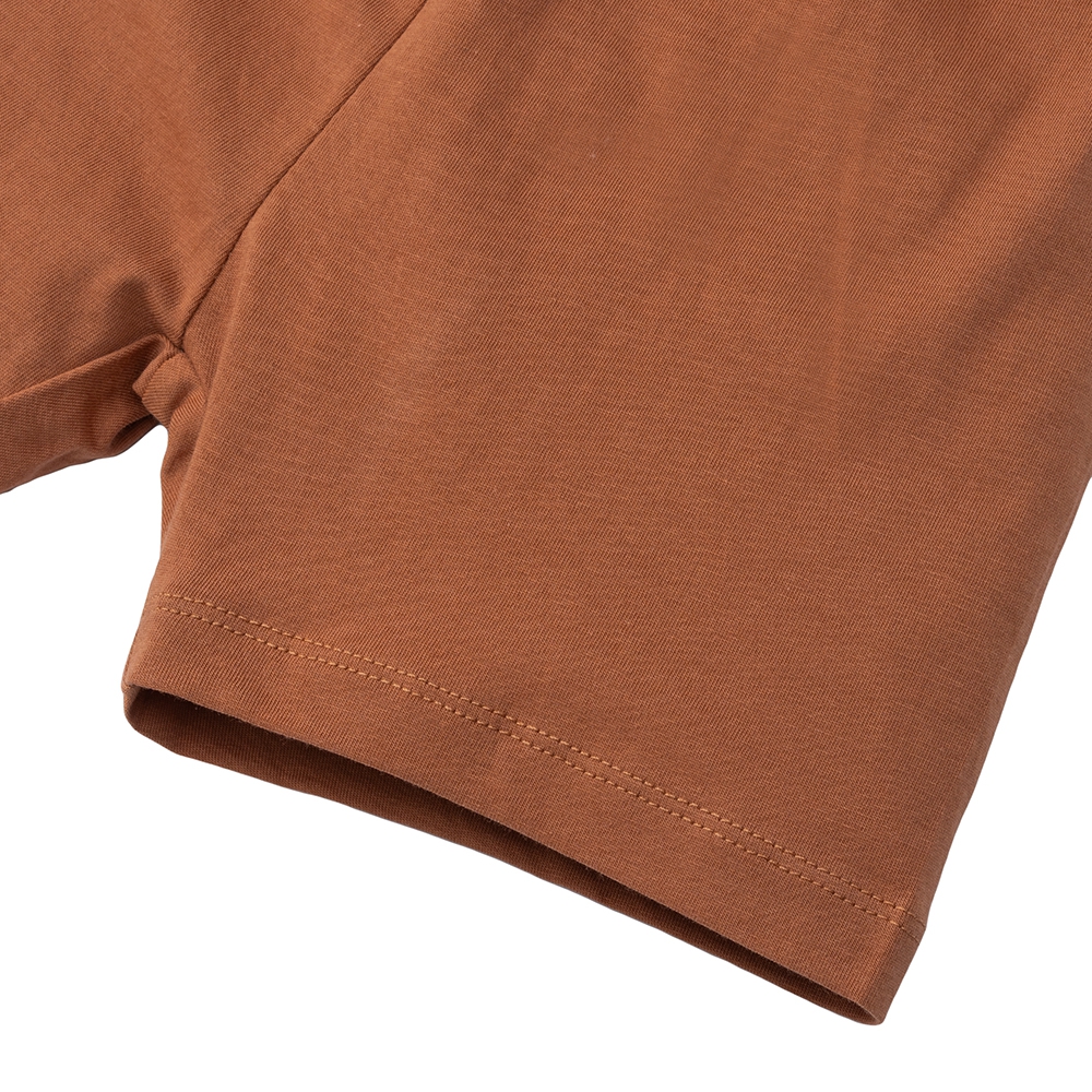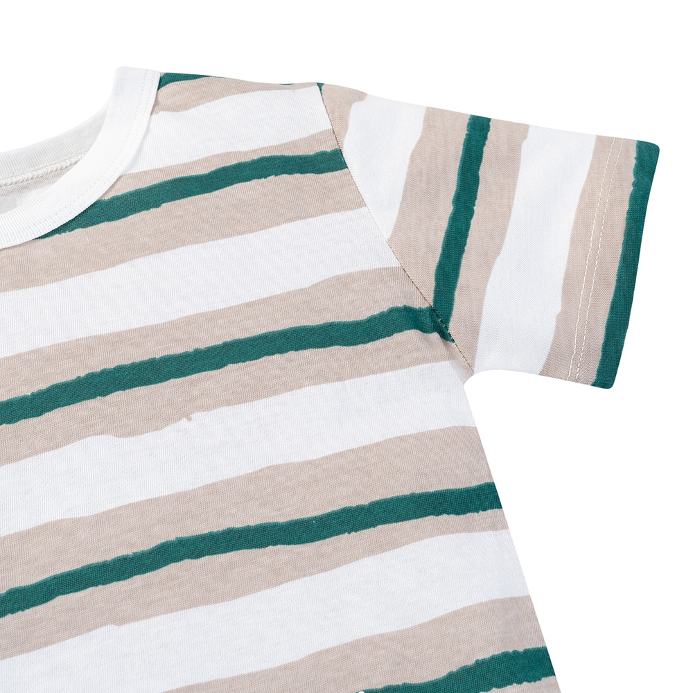 Thiết kế áo cổ tròn tay ngắn, bo viền nhẹ nhàng giúp bé dễ mặc, dễ cởi mà không gây khó chịu.