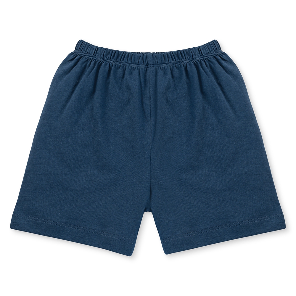 Quần short phối màu xanh dương nhạt, co giãn tốt, tạo sự thoải mái cho bé khi vận động, bò, chạy nhảy.