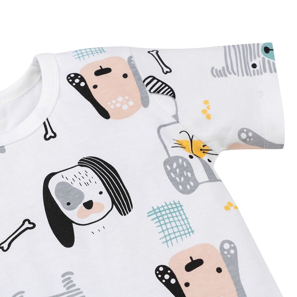 Họa tiết chó con vui nhộn được in sắc nét, không phai màu, mang lại tinh thần hồn nhiên và vui tươi cho bé trai.
