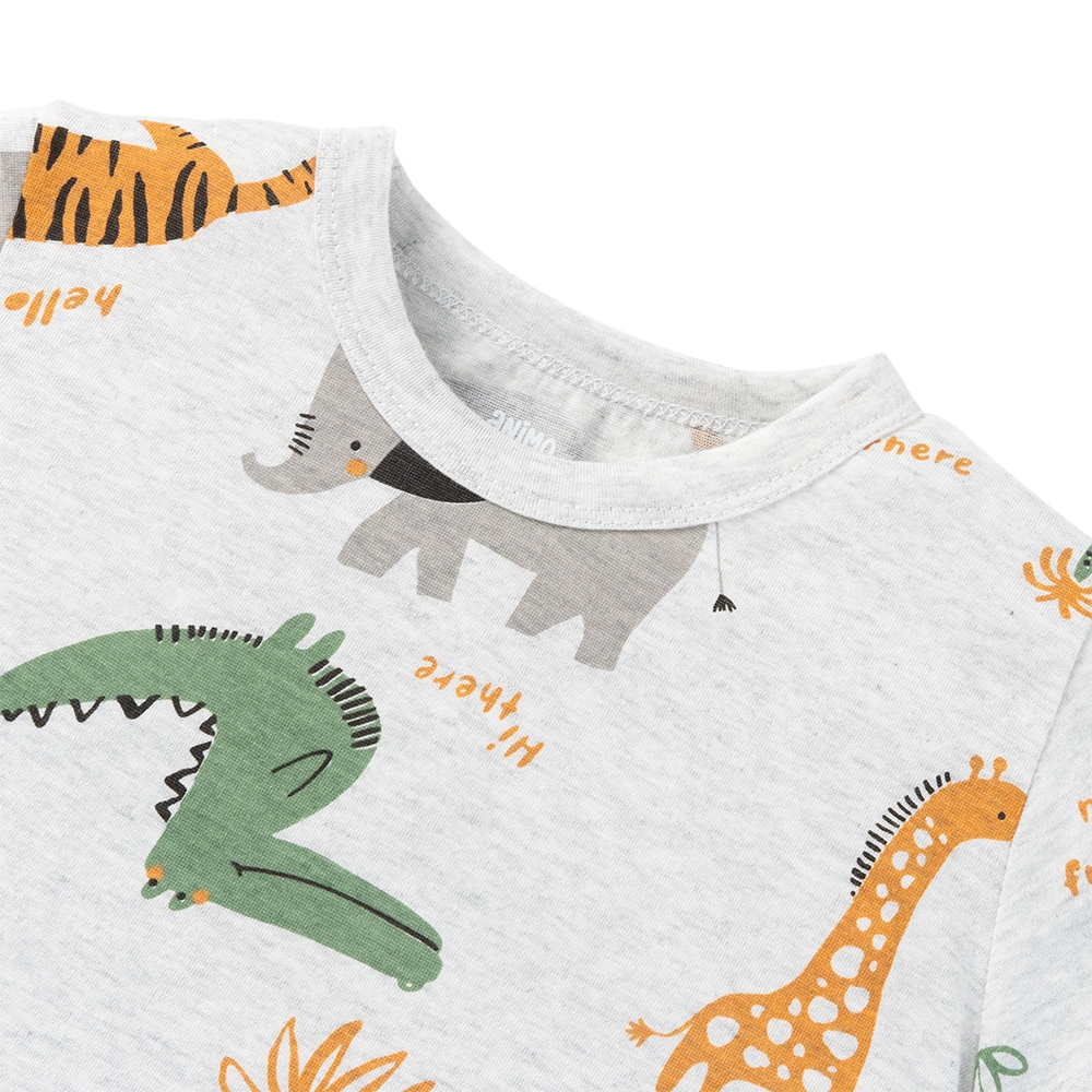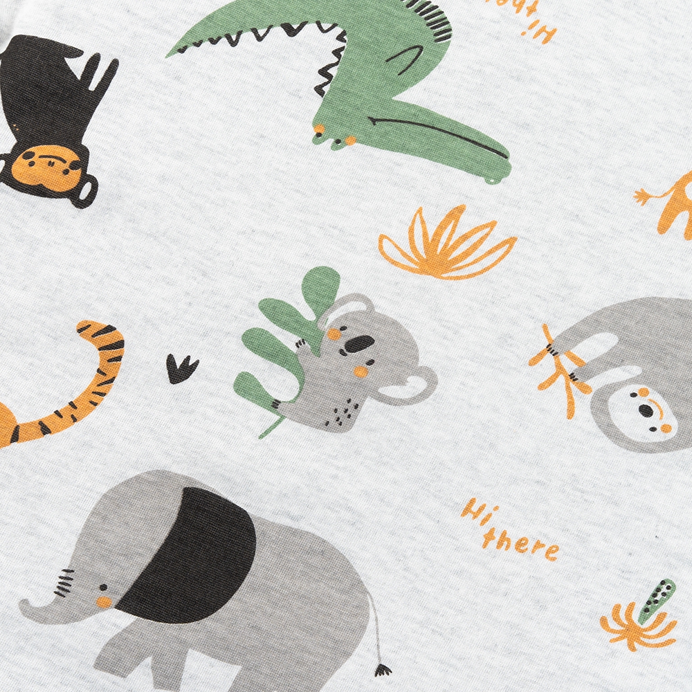 . Hoạ tiết động vật ngộ nghĩnh, màu sắc trung tính giúp vẻ ngoài bé thêm nổi bật và dễ thương.