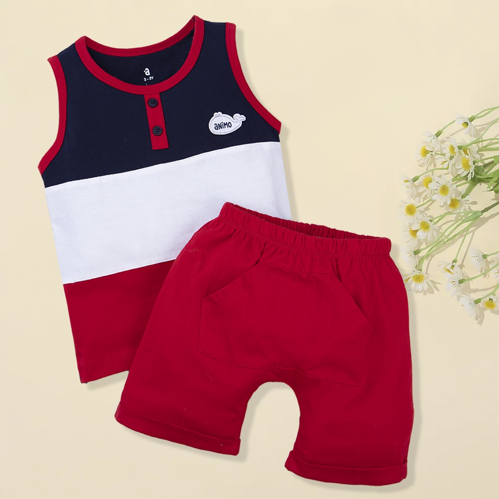 Bộ bé trai ngắn, bst Biển sâu dậy sóng Animo HN822065 (6M-6Y, Đỏ)