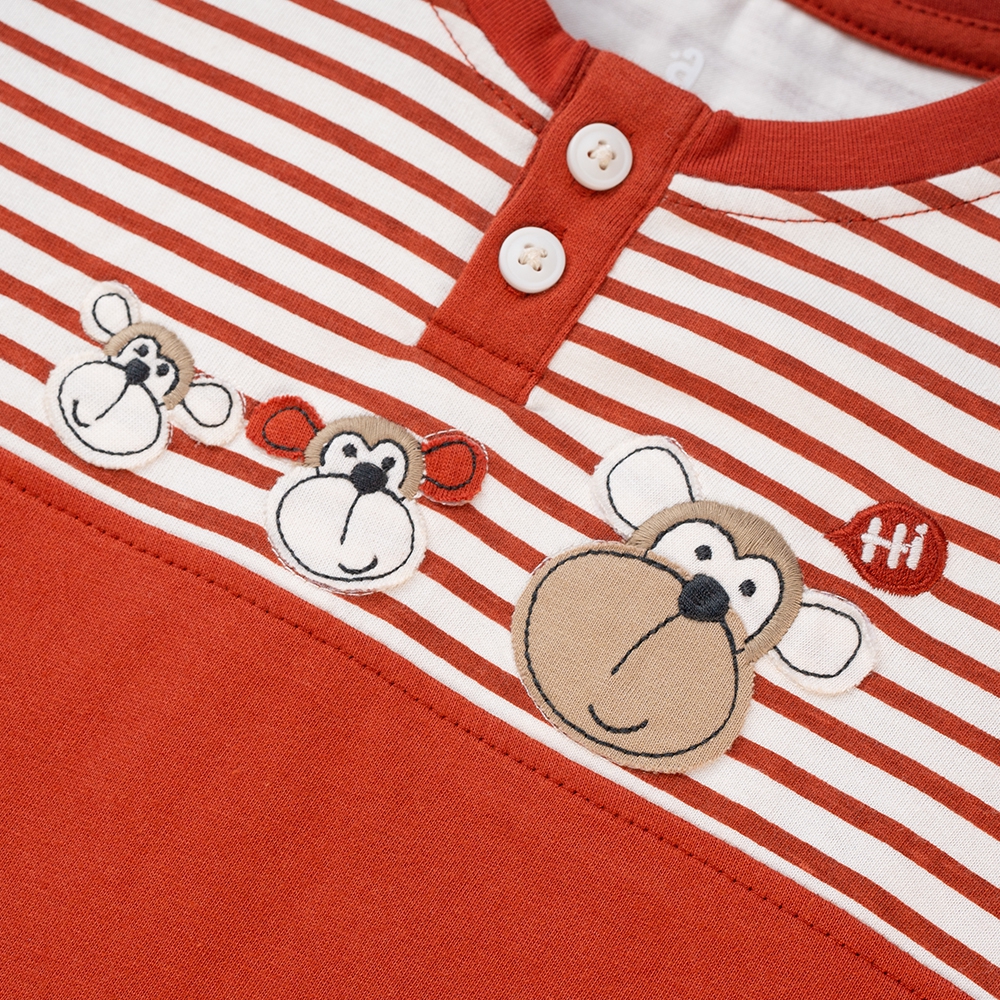 . Gam màu tươi sáng cùng hoạ tiết khỉ được thêu tỉ mỉ giúp bé yêu tự tin, nổi bật hơn;