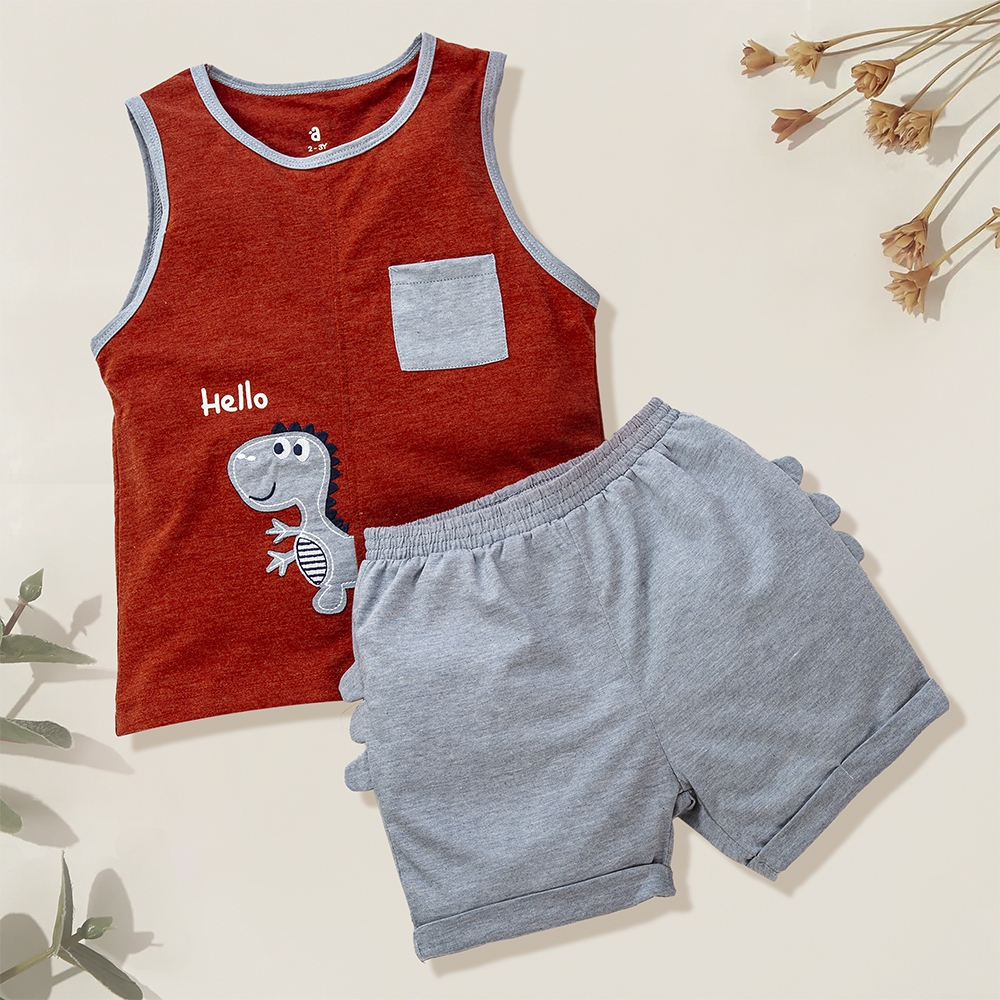 Bộ bé trai ngắn, bst khủng long Animo HN522037 (18-24M,Đỏ)