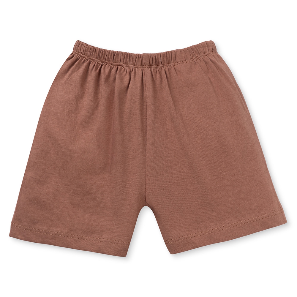 Quần short cạp chun co giãn vừa vặn, thuận tiện khi bé vui chơi hoặc nghỉ ngơi.