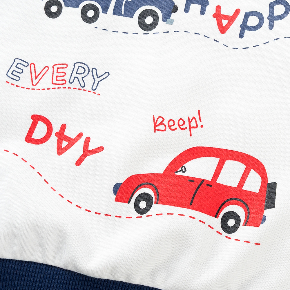 Họa tiết xe hơi sinh động, tông màu đỏ – trắng nổi bật, mang lại phong cách năng động.