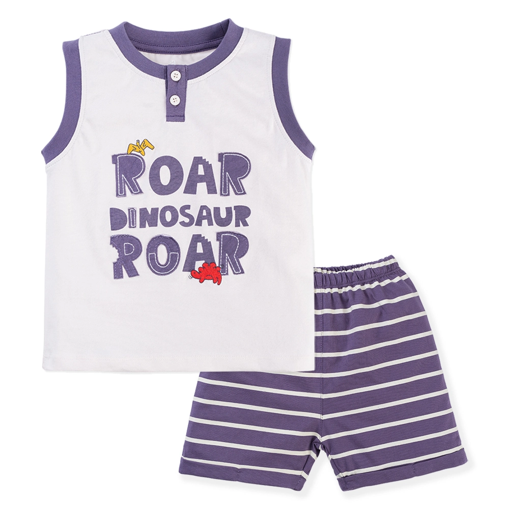 Bộ sát nách bé trai ngắn Dino Animo HN0524004 (6M-6Y,Kem phối tím)
