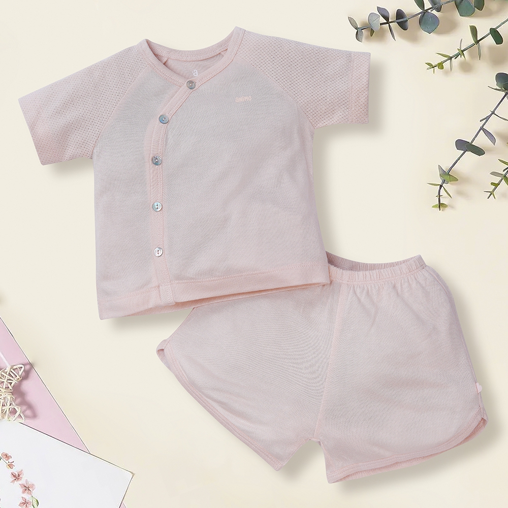 Bộ sơ sinh tính năng ngắn, vải lưới Animo I0322020 (0-12M,Cam)