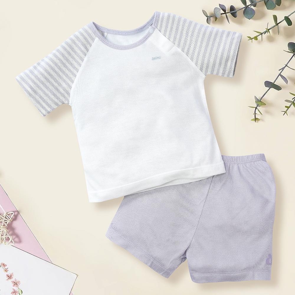 Bộ sơ sinh tính năng ngắn, vải lưới Animo I0322021 (12-24M,Xám)