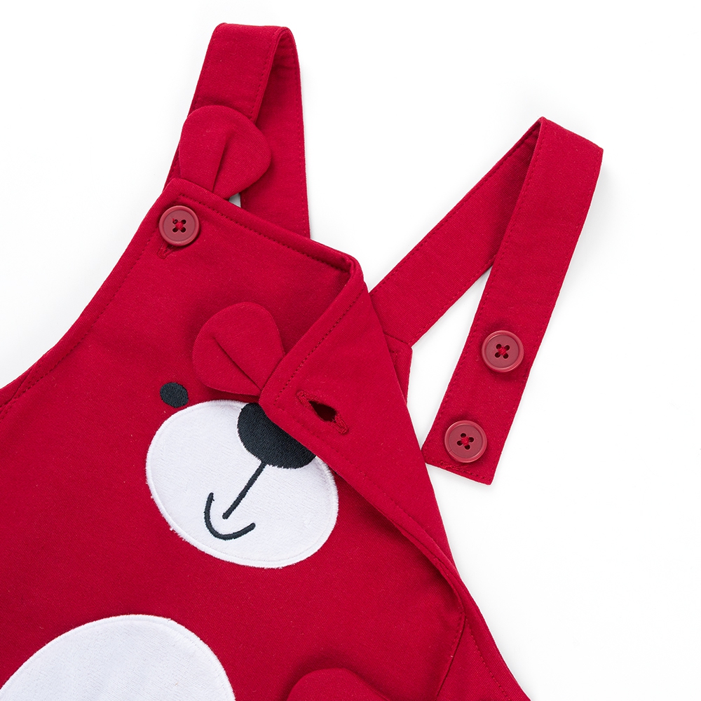 . Thiết kế yếm ngắn liền thân, họa tiết gấu đáng yêu, phù hợp cho bé trai năng động