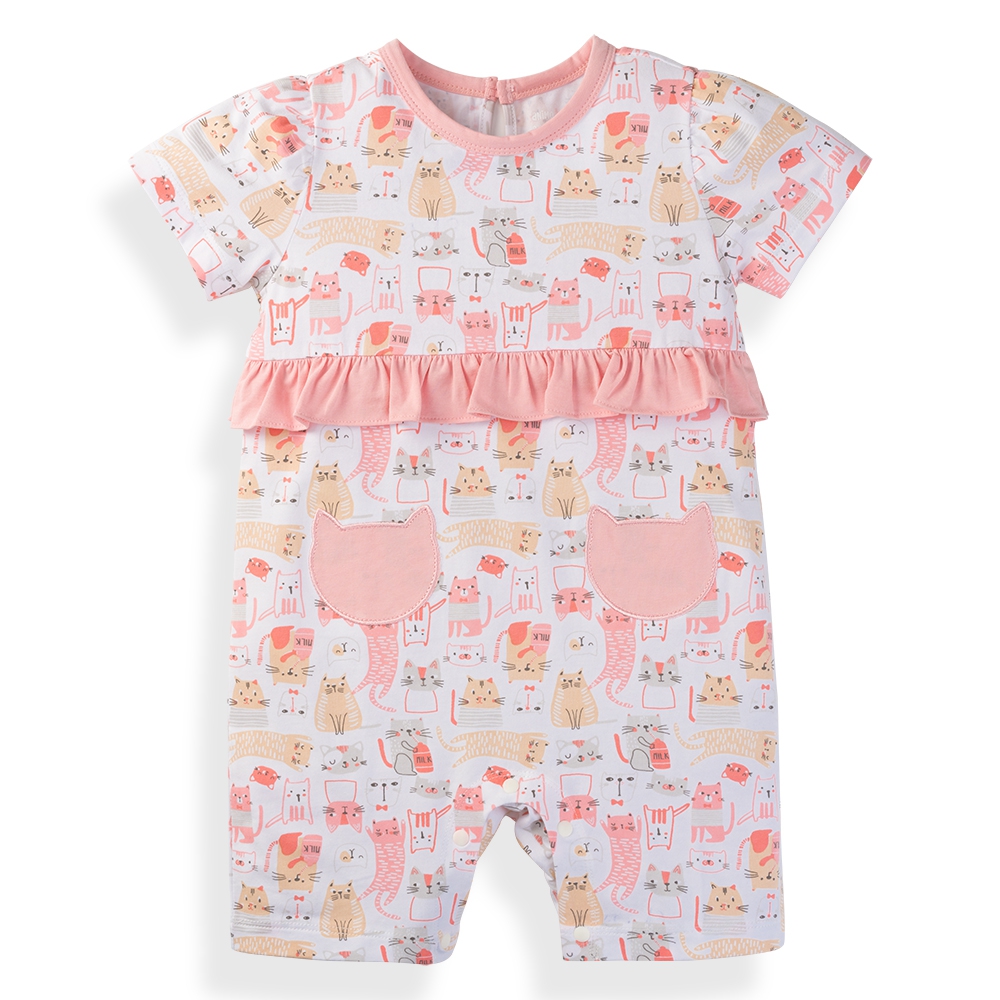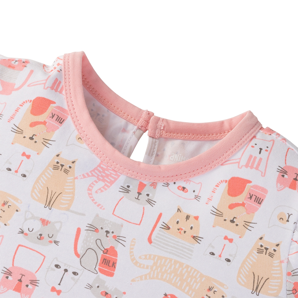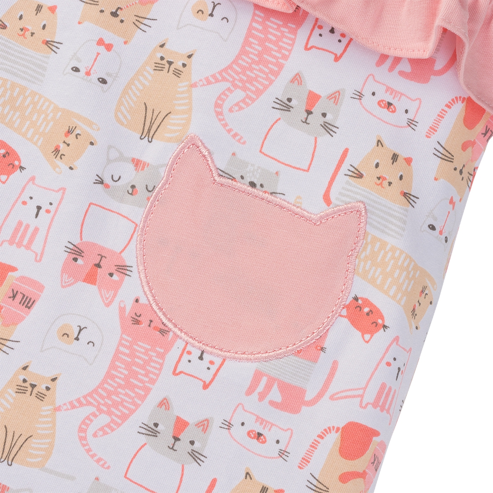 . Thiết kế bèo ở dưới ngực và 2 túi hình mèo dễ thương, bé diện vào chắc chắn rất cưng;