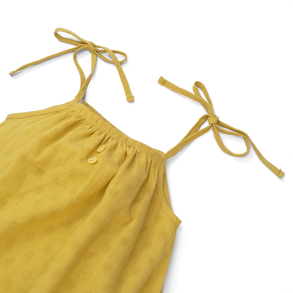 . Thiết kế sát nách được cách điệu thành dây cột nơ giúp bé gái thêm phần điệu đà;