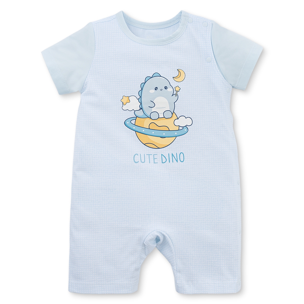 Bodysuit đùi Animo VD0825050 thuộc BST Cute Dino, dành cho bé trai từ 0–12 tháng, thiết kế xanh nhạt dễ thương cùng hình khủng long “Cute Dino” đáng yêu.