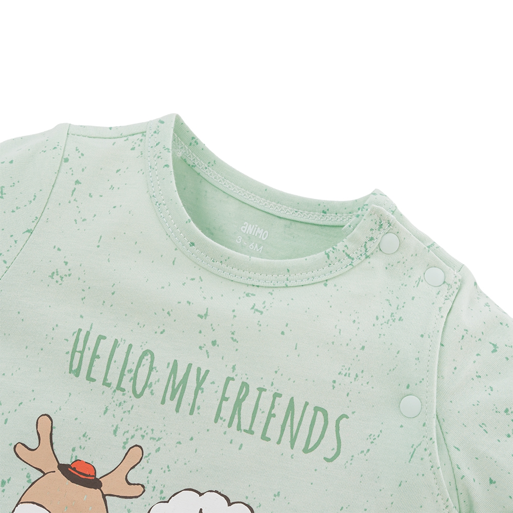Tên sản phẩm Bodysuit bé trai đùi bst friends Animo VD0825039 (0-12M, Xanh lá, NN02)