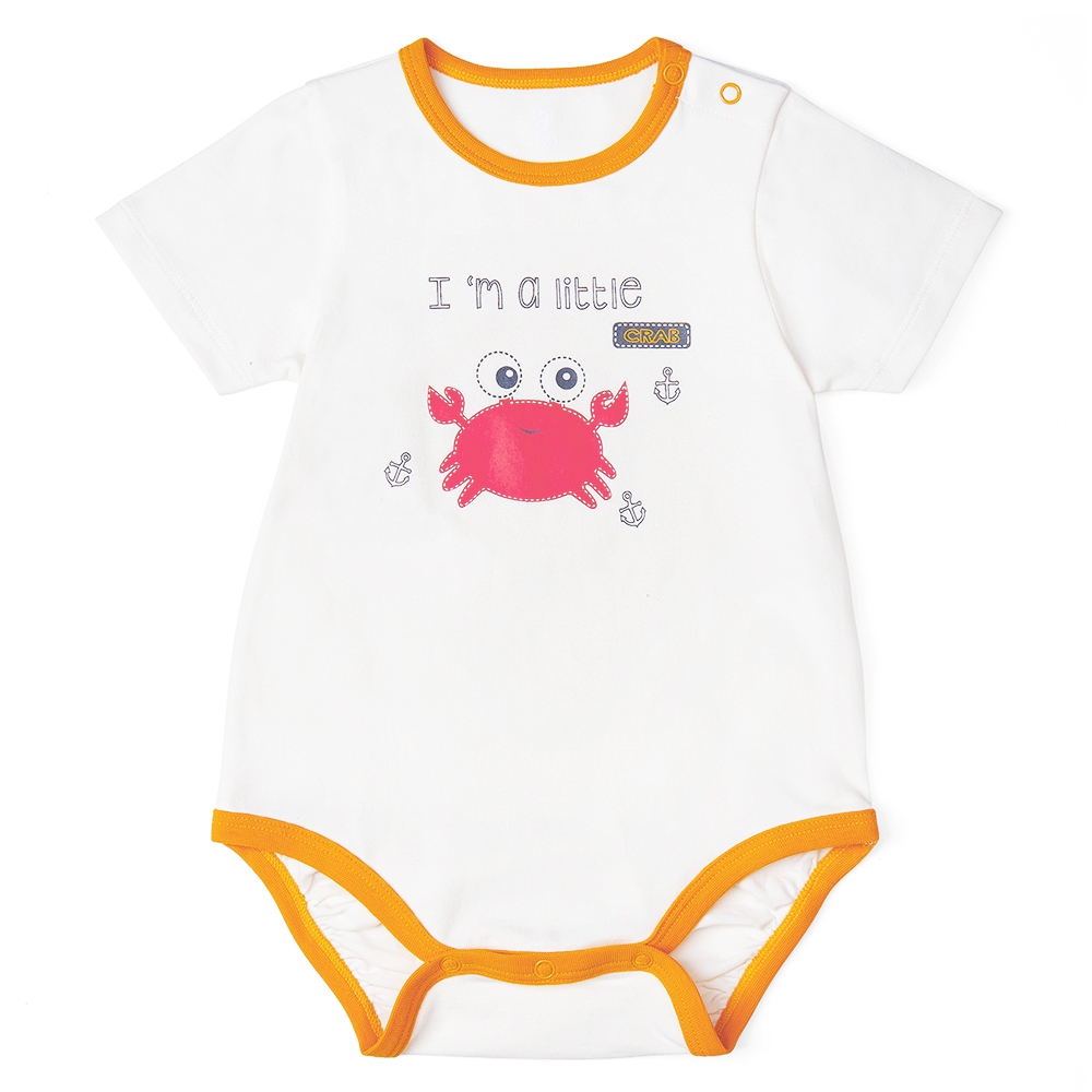 Bodysuit bé trai tam giác Bst Cua sốt trứng muối Animo KK822022_515 (9-12M,Trắng )