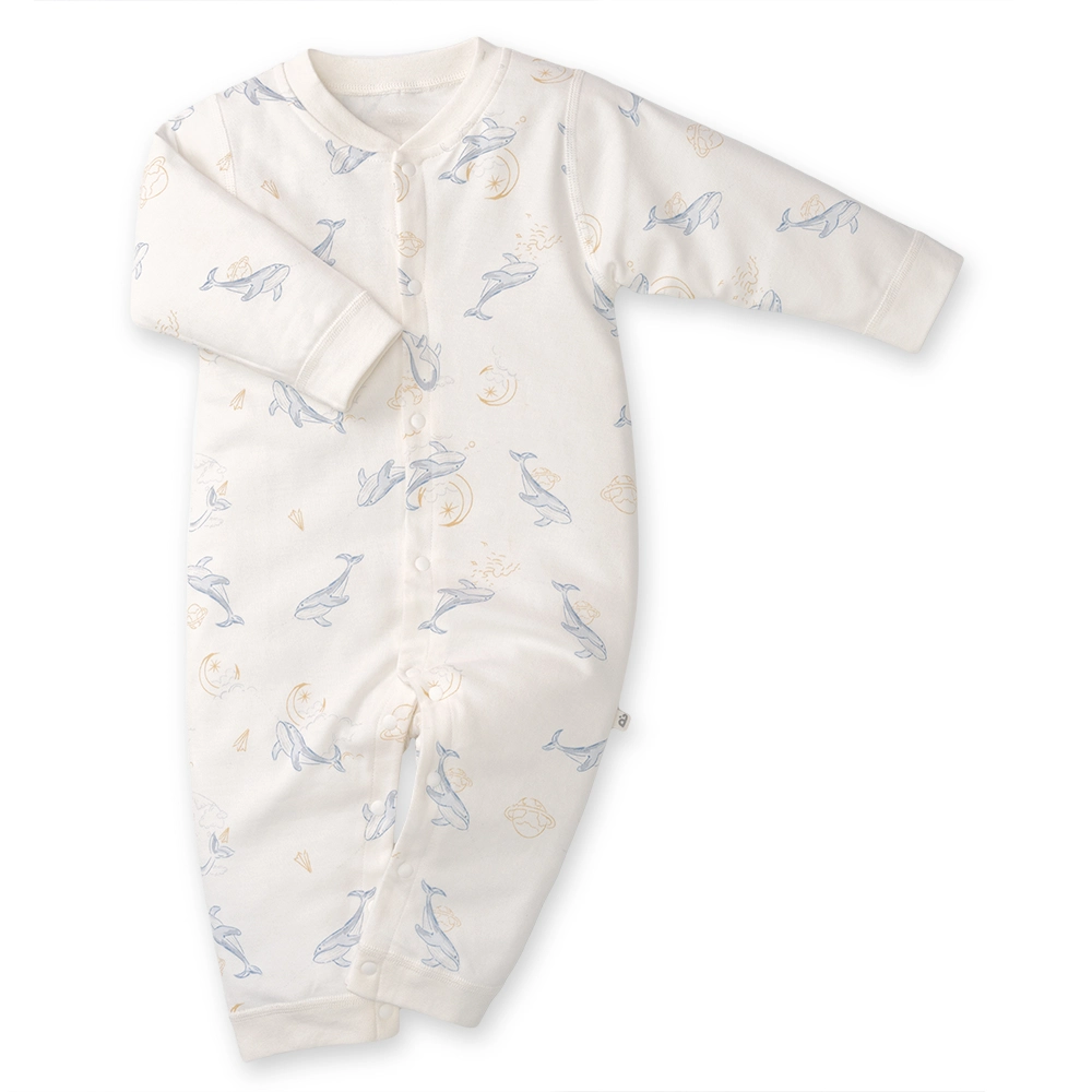 . Trang bị hàng nút cài giữa dài từ ngực tới chân giúp thuận tiện cho việc thay đồ, bỉm;