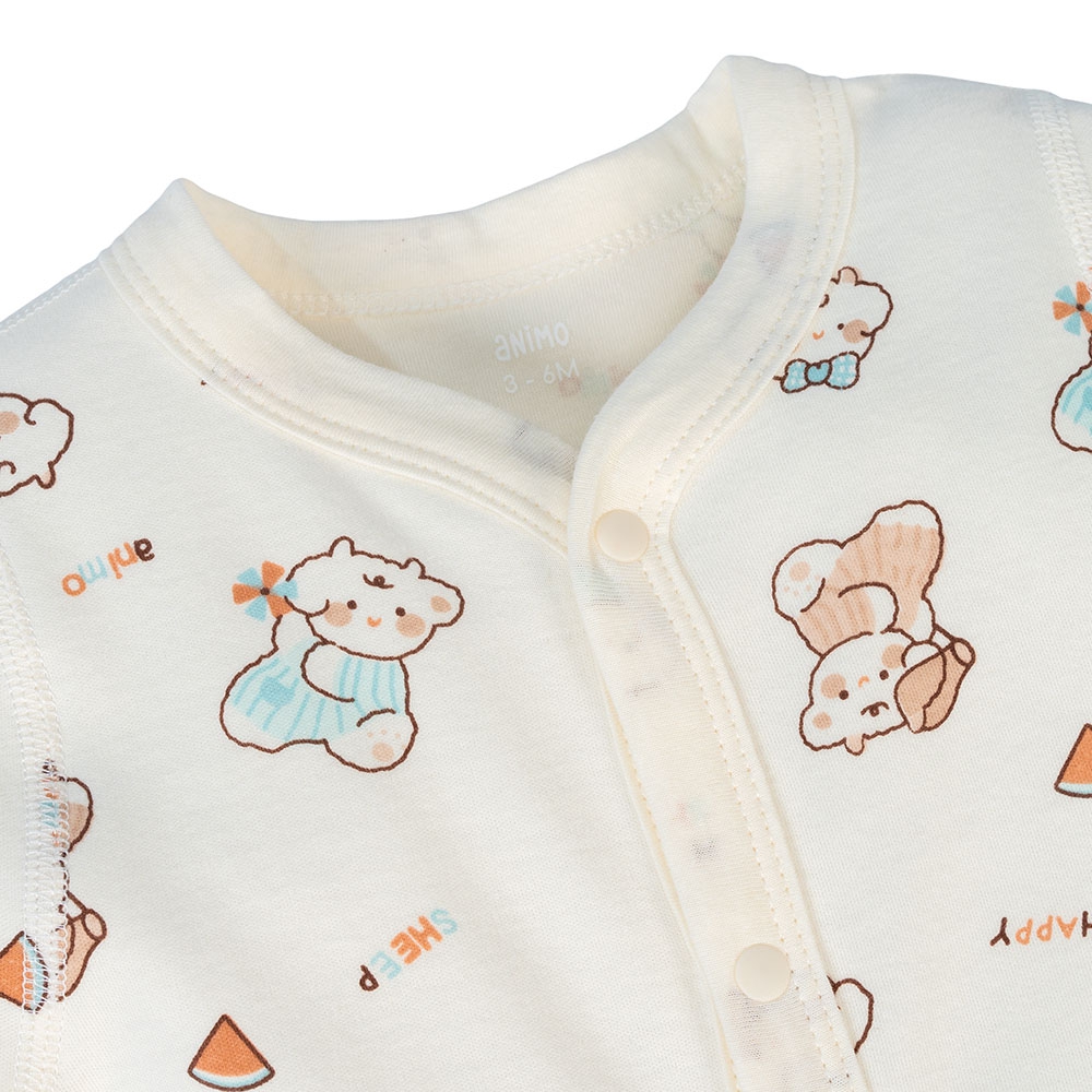 Bodysuit đông vải mỏng Animo MN1024013_M8987 (0-9M,Kem)
