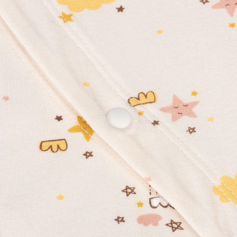 . Hàng nút cài chéo dọc từ cổ đến chân giúp việc thay đồ cho bé trở nên dễ dàng hơn;