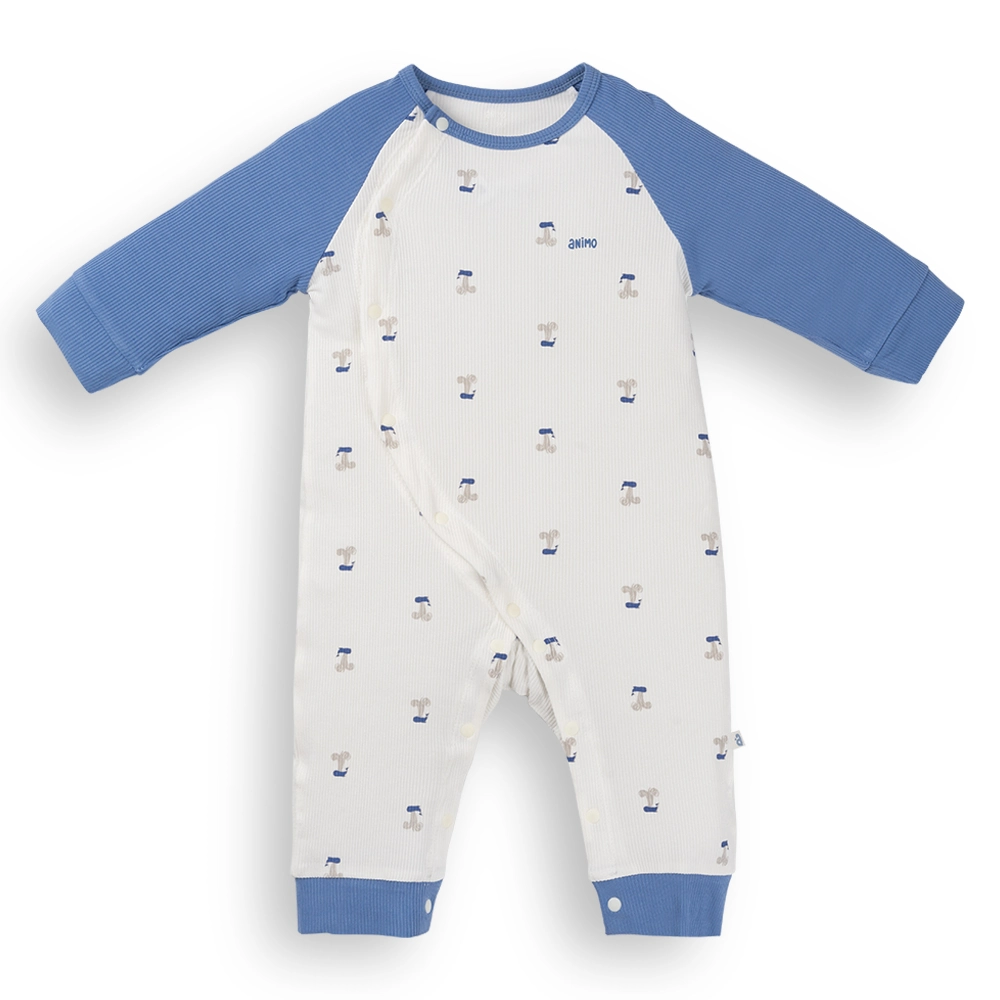 Bodysuit rayon jacquard dài Animo KV1124017 (0-12M,Xanh)