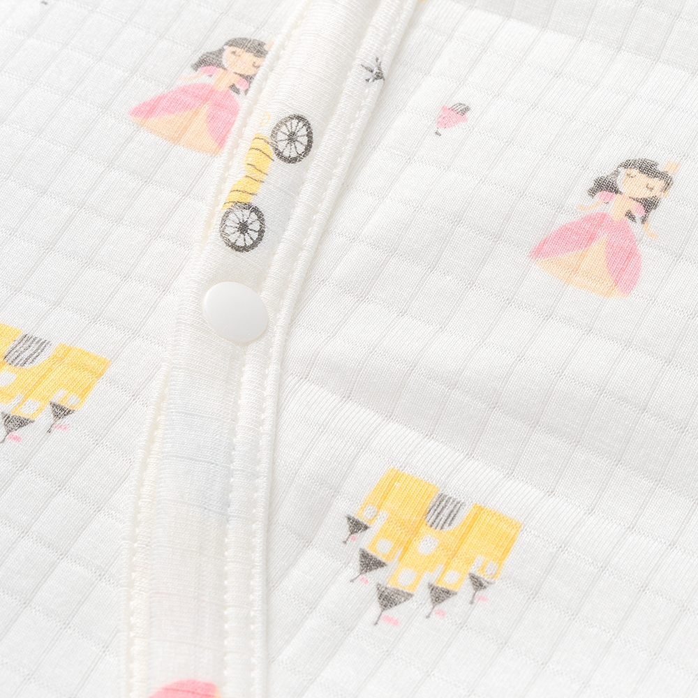 . Hoạ tiết dễ thương, màu sắc tươi sáng giúp vẻ ngoài bé thêm dễ thương, đáng yêu.
