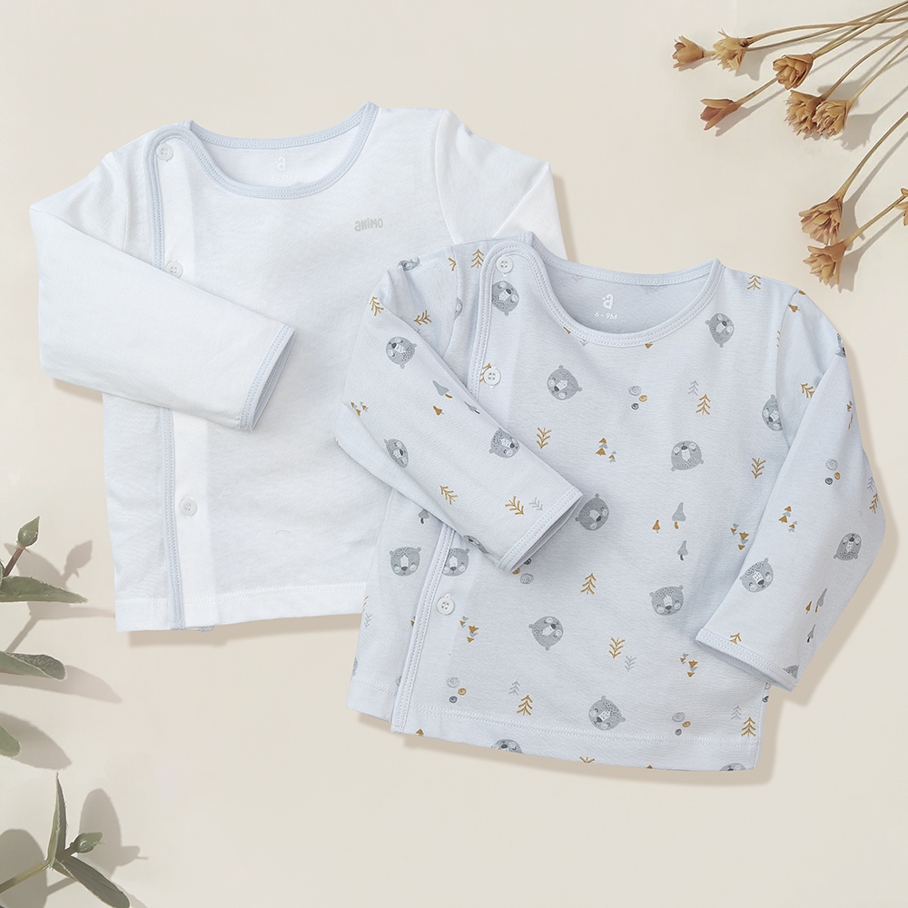 | Tên sản phẩm | Cặp áo sơ sinh cài chéo tay dài Animo KV422062 (NB-12M,Xám) |