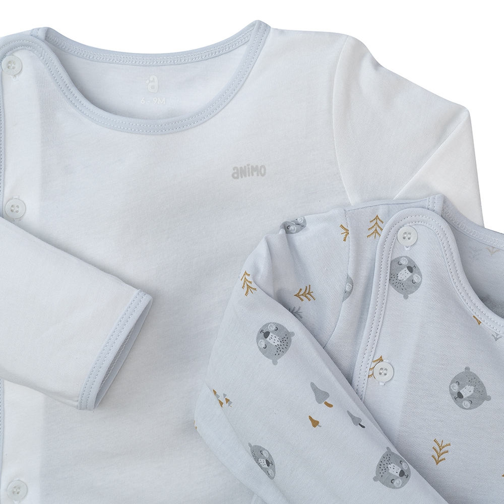 Cặp áo sơ sinh cài chéo tay dài Animo KV422062 (NB-12M,Xám) với chất liệu thoáng khí cùng thiết kế đáng yêu và kiểu dáng thoải mái thích hợp cho bé diện khi ở nhà hoặc khi đi chơi với ba mẹ đều được.