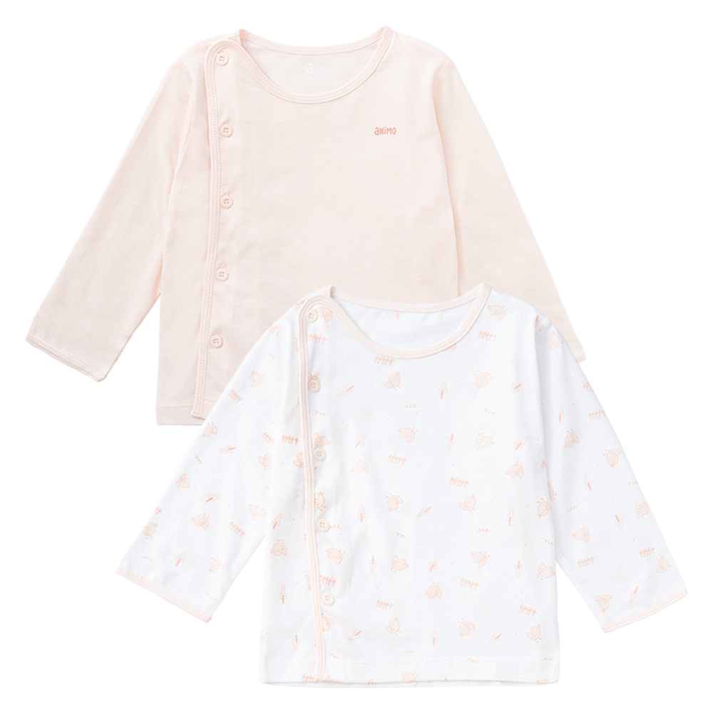 Cặp Áo SS cài chéo tay dài Animo KV223015 (6-9M,Trắng họa tiết-Cam)