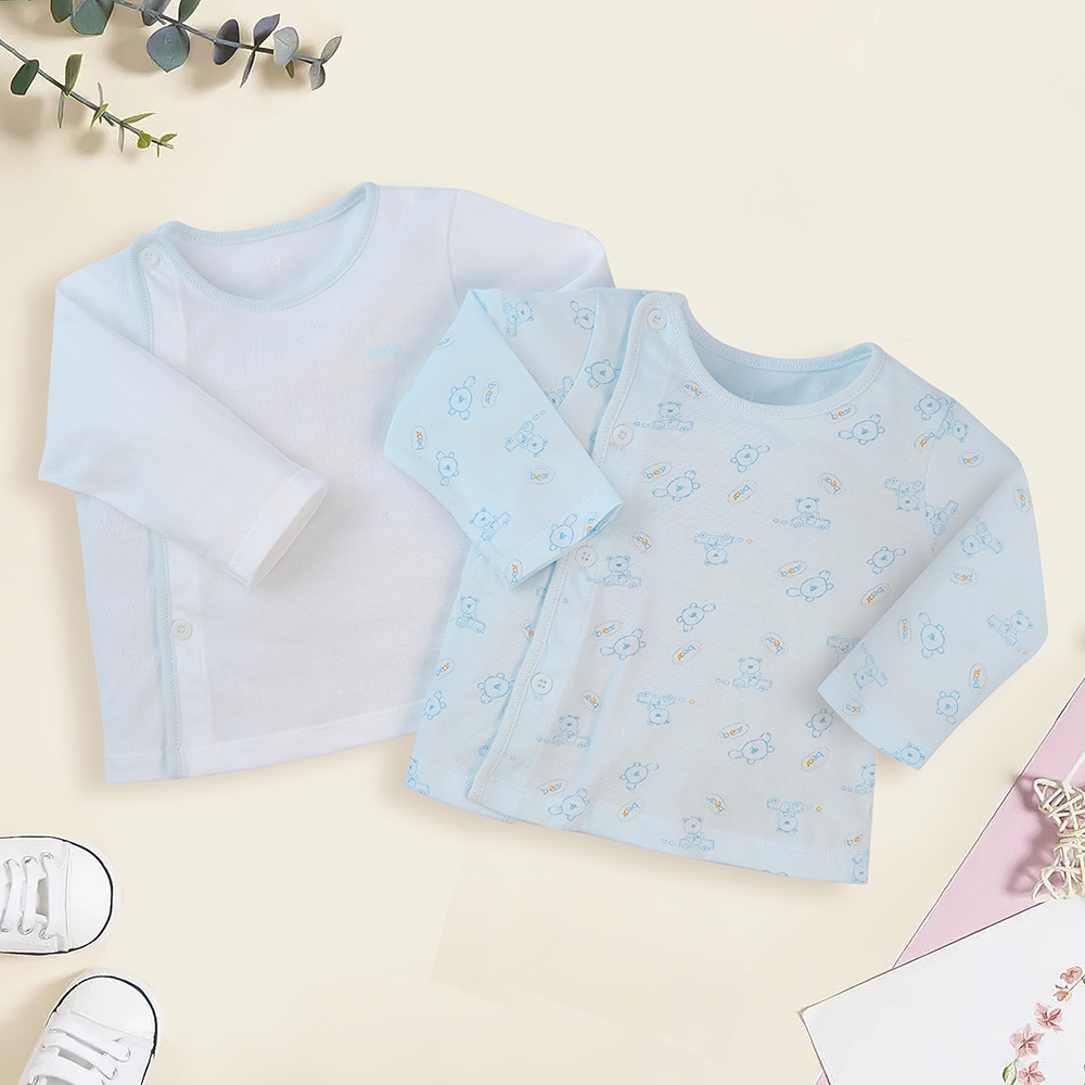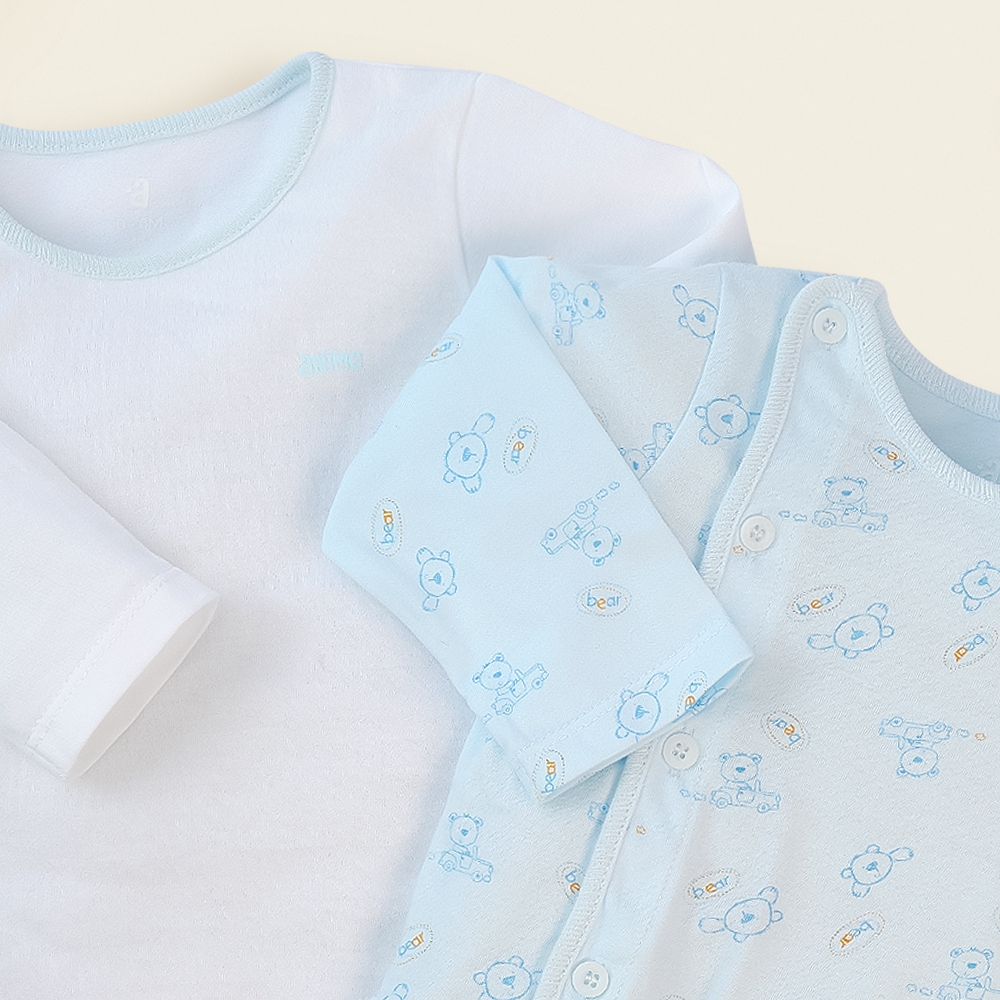 Tên sản phẩm: Cặp áo sơ sinh cài chéo tay dài Animo LĐ422049 (NB - 3M,xanh-trắng)