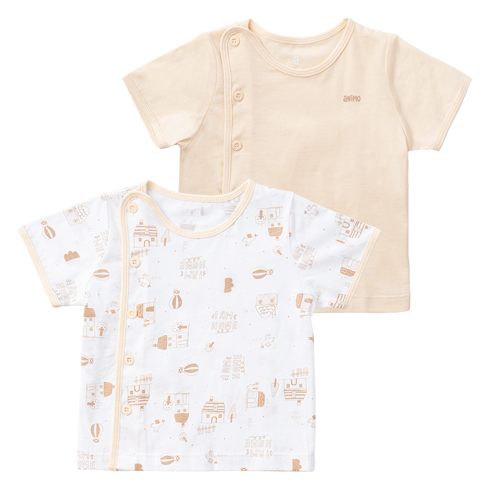 | Tên sản phẩm | Cặp áo sơ sinh cài chéo tay ngắn Animo KV223011 (NB-12M,Trắng họa tiết-Kem) |