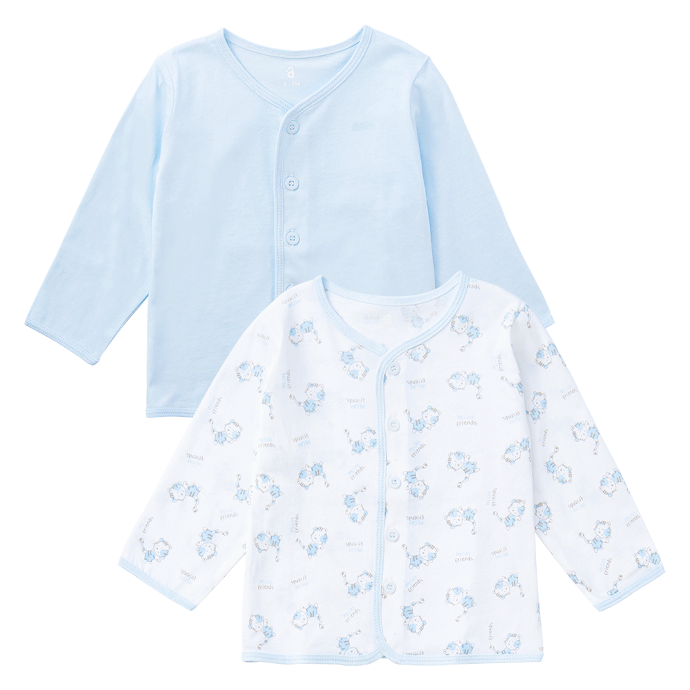 Cặp Áo SS cài giữa tay dài Animo KV223020 (3-6M,Trắng họa tiết-Xanh)