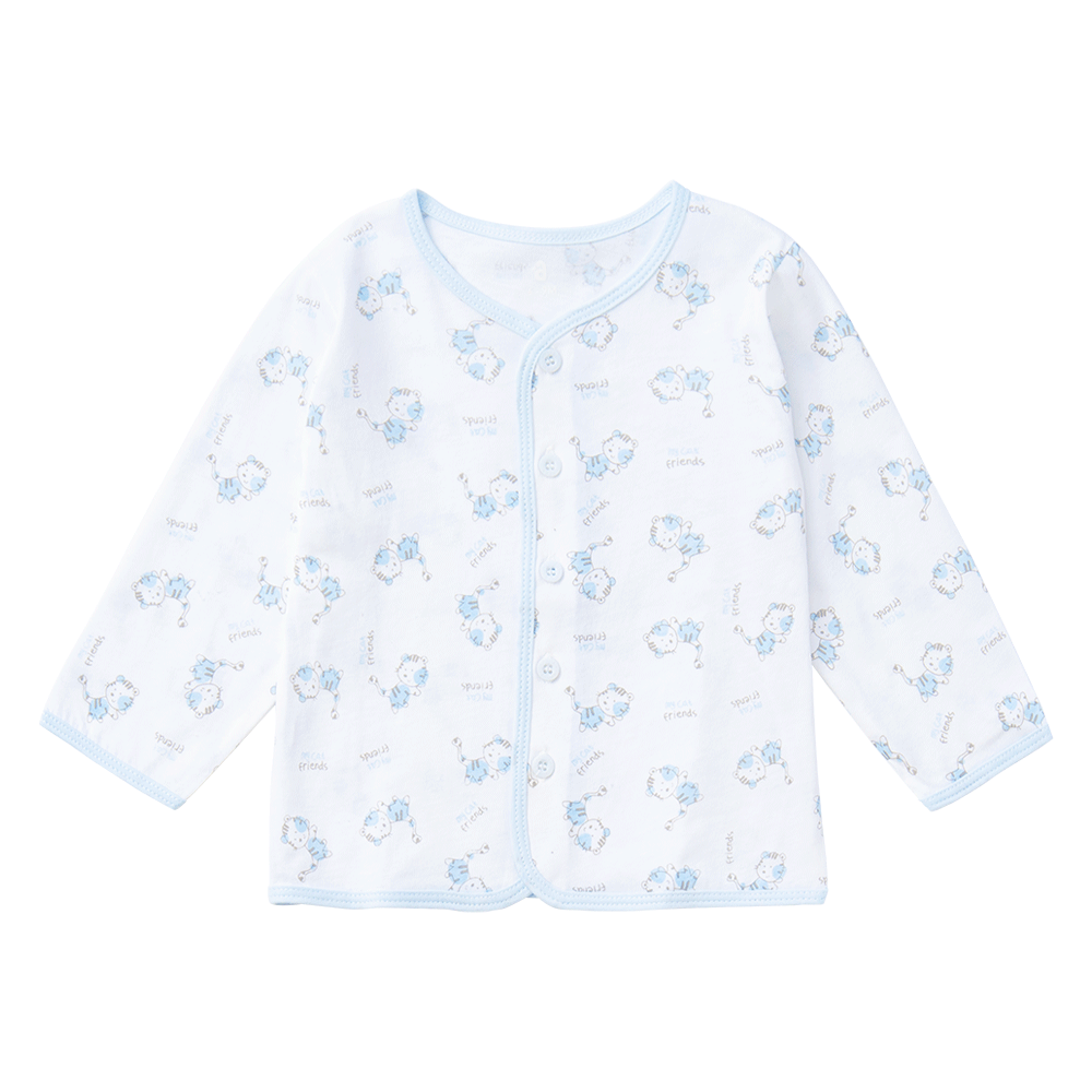 Cặp áo sơ sinh cài giữa tay dài Animo KV223020 (NB-12M,Trắng họa tiết-Xanh)
