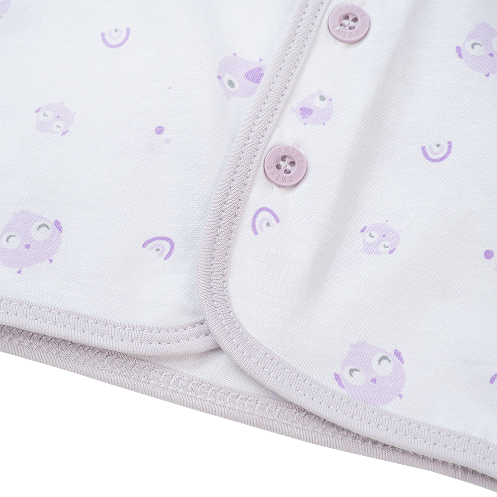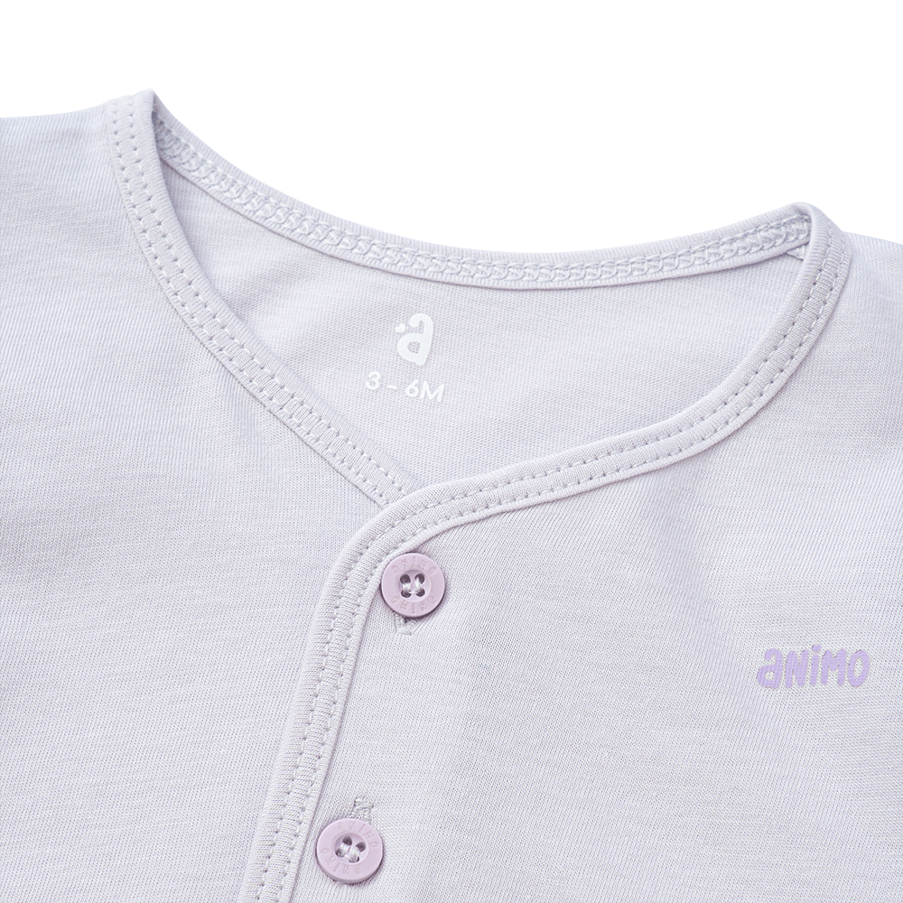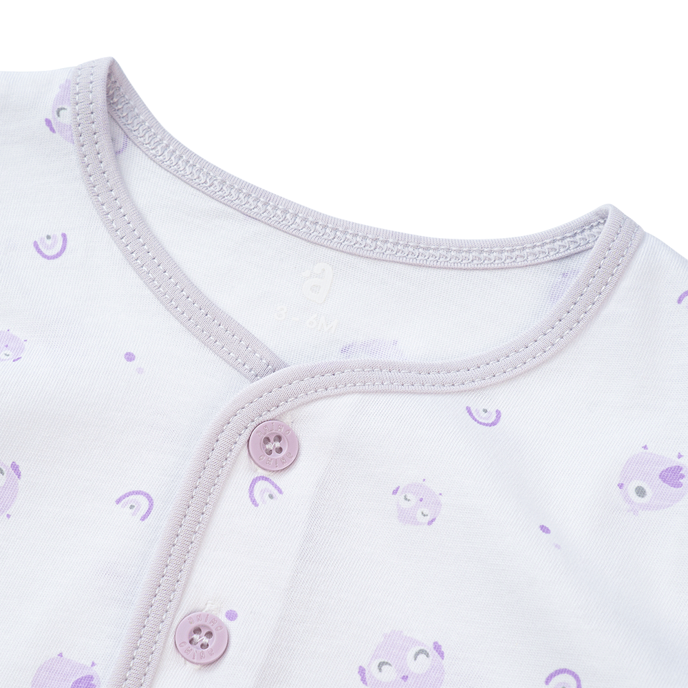 Cặp áo sơ sinh cài giữa tay dài Animo KV223021 (NB-12M,Trắng họa tiết_Tím)
