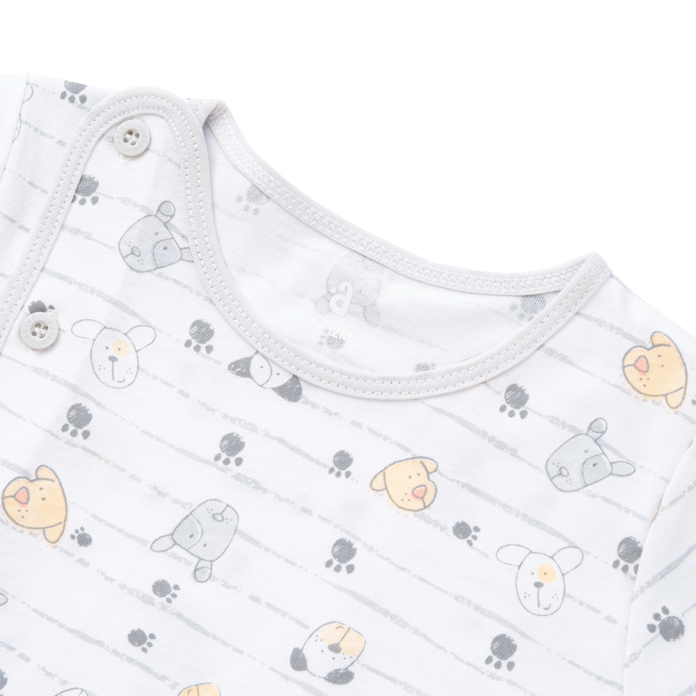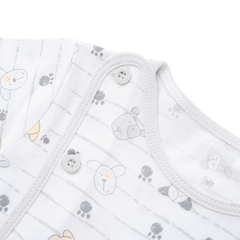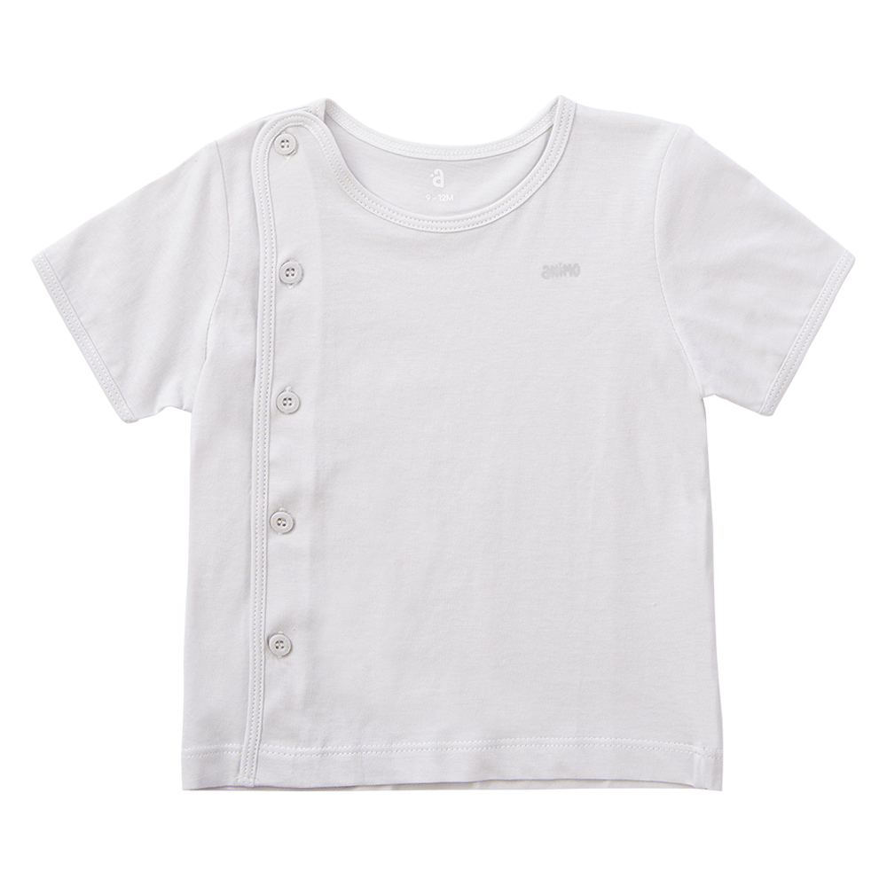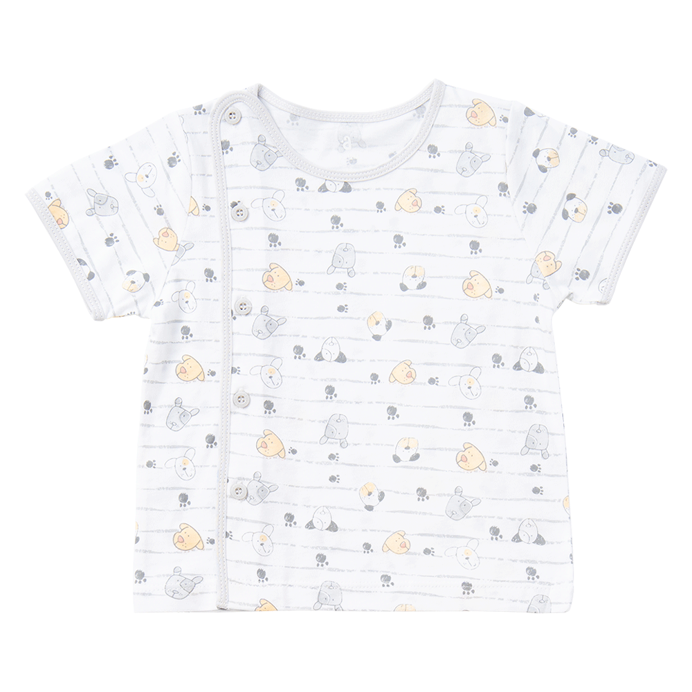 Cặp áo sơ sinh cài chéo tay ngắn Animo KV123018 (NB-12M,Trắng họa tiết_Xám)